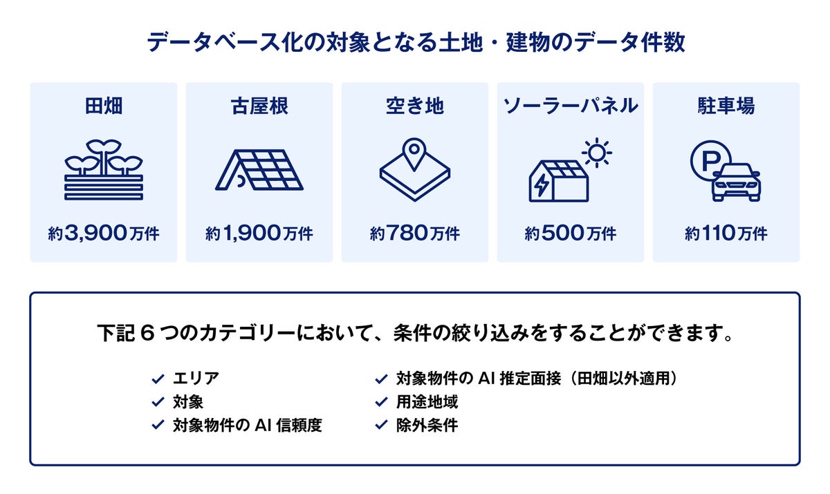 空き地や駐車場など合計約7,300万件の探索結果データをインポート