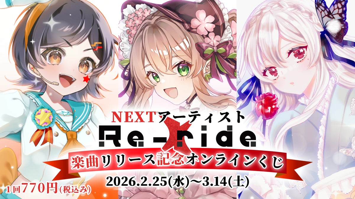 「クリエイティビティ×テクノロジー」でIP開発を行う株式会社CHET Group(本社:東京都品川区 代表取締役CEO:小池祐輔)は、オンラインくじサービス「CHETスクラッチ」にて、VTuber「一ノ宮満月」「はなごろも」「LOCO」 のオリジナルグッズが必ず当たる『NEXTアーティスト Re-ride楽曲リリース記念オンラインくじ』を、2026年2月25日(水)18:00より販売開始いたします。