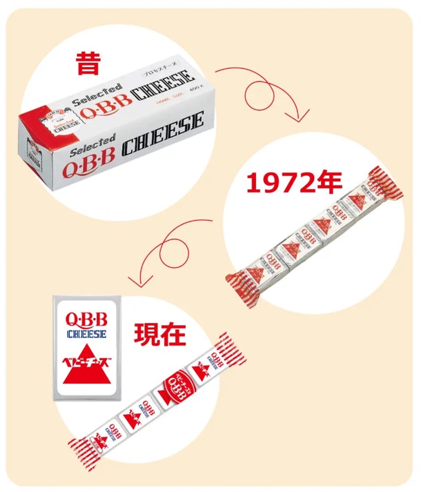 1972年当時ブロックタイプが主流でしたが、自宅でカットするという手間を省き、個包装で便利に食べてもらおうと誕生したのが「QBBベビーチーズ」です。