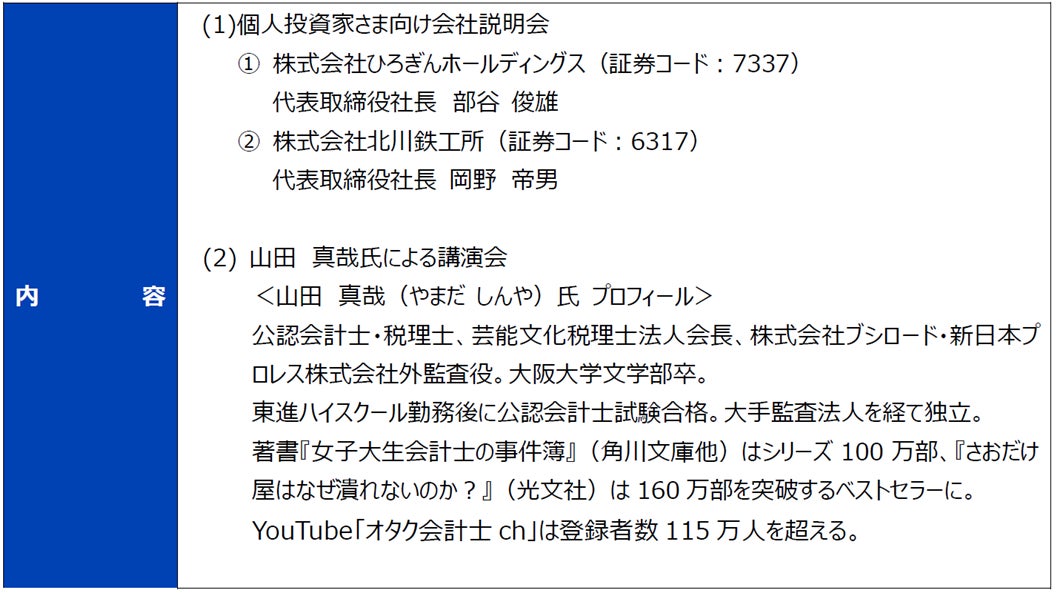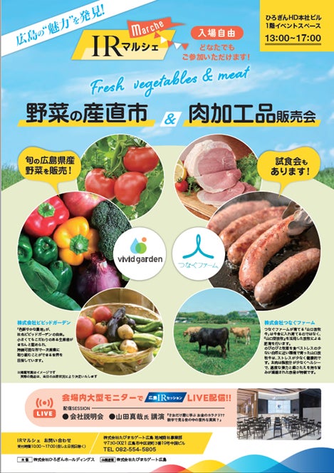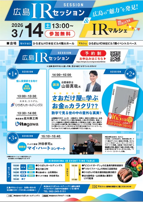 株式会社ひろぎんホールディングス(社長 部谷 俊雄)では、IRセッションおよびIRマルシェを開催いたしますので、下記のとおりお知らせいたします。