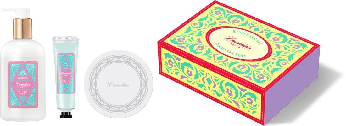 ランドリン初のハンドソープ、「GOOD TEA TIME」アロマティックハンドソープと人気のハンドクリーム、そしてソープトレーがセットになったギフトセットです。