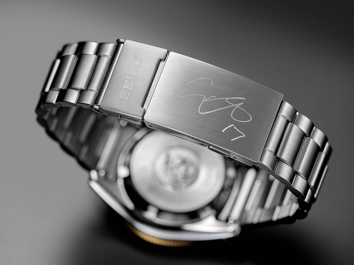 限定モデルならではの特別仕様として、大谷選手の背番号「17」が「りゅうず」に入り、大谷選手のサインが中留にマーキングされています。また、裏蓋には、SHOHEI OHTANI LIMITED EDITIONの文字と限定シリアルナンバーがマーキングされます。