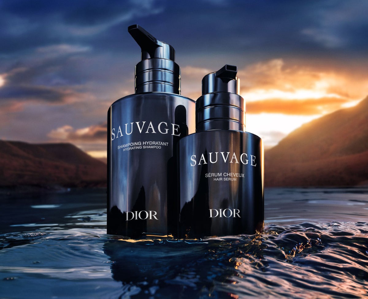 ソヴァージュの美学を体現するシャンプーとヘア セラムは、印象的なミッドナイトブルーのボトルに収められています。