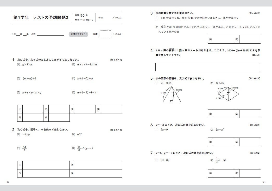 ▲『中1数学』より。「テストの予想問題」 ※紙面はイメージです