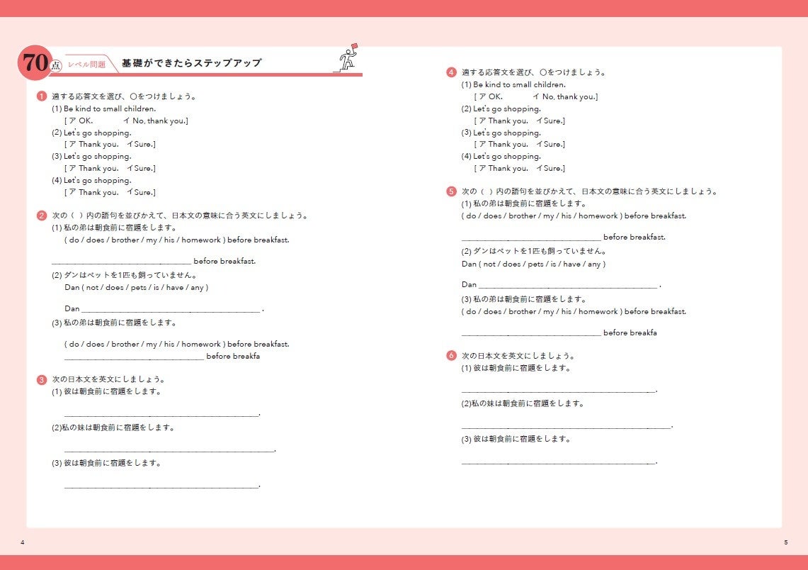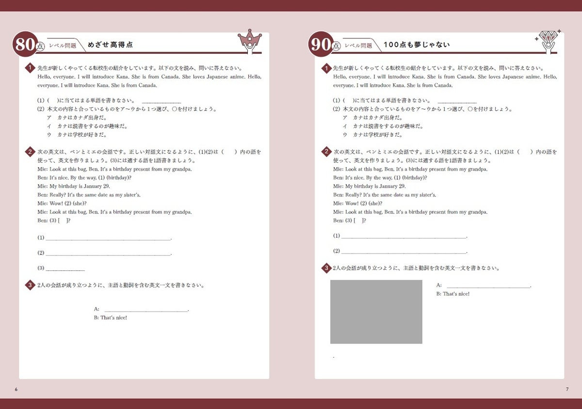 ▲『中1英語』より。「80点レベル問題」~「90点レベル問題」 ※紙面はイメージです