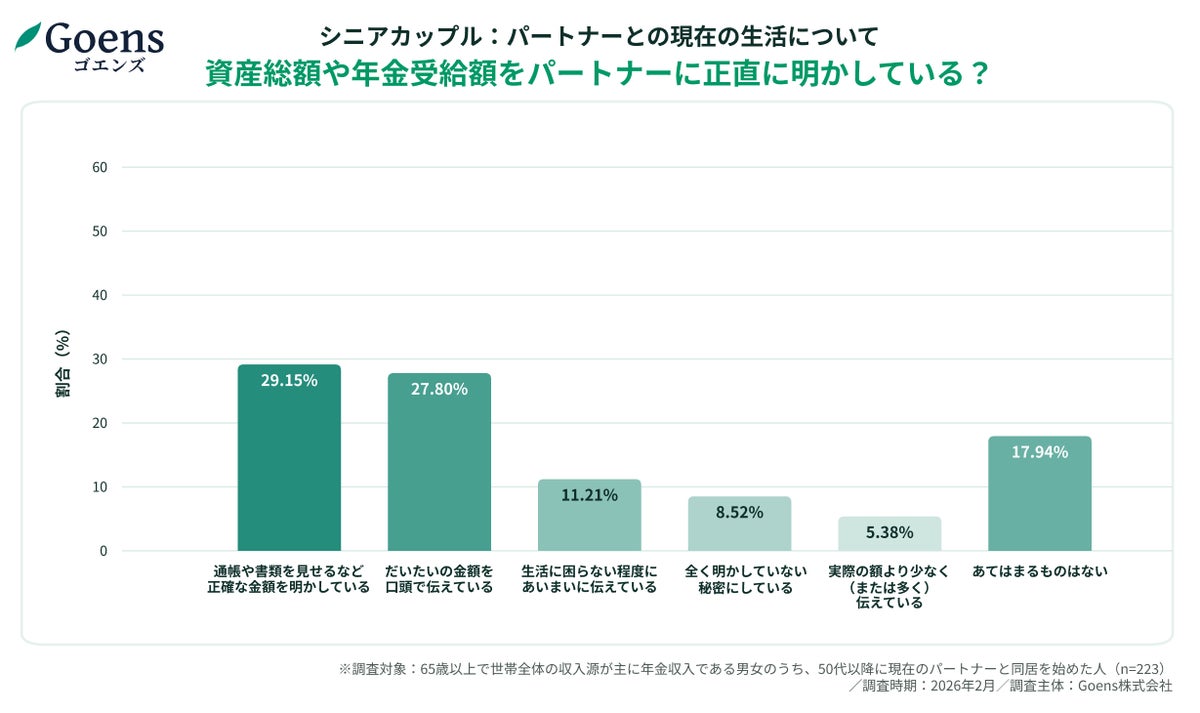 資産を「すべて明かす」は3割未満。資産の全容は共有しない“大人の距離感”