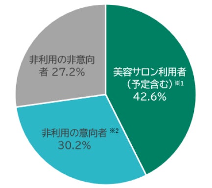 ・欧米豪からの訪日外国人旅行者のうち、今回の旅行中での日本の美容サロン利用者(「行った」「予約済み」「行くことを決めている」)は42.6%でした。・利用者と非利用の意向者(今後、日本で「行ってみたい」)を合わせると72.8%となり、欧米豪からの旅行者における日本の美容サービスへの関心の高さがうかがえます。