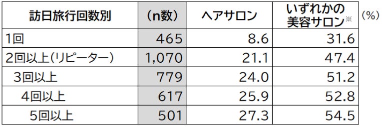 美容サロン利用率(訪日旅行回数別)
