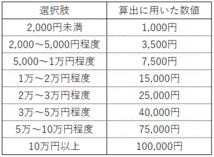 ※美容に関わる支出総額の平均は、単一回答の各選択肢を以下の通り数値化し、その平均値を求めました。