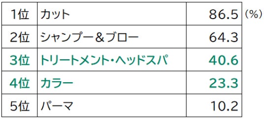 Q.日本のヘアサロンで、利用した(利用する予定の)メニューについて全てお選びください。