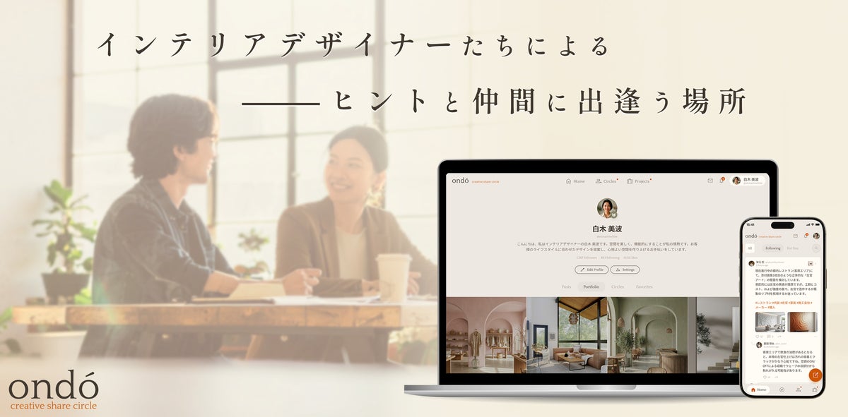 株式会社オンド(本社:大阪府大阪市、代表取締役:清島 佐久馬)は、インテリアデザイン・建築・施工業界に特化したコミュニティWebアプリ「ondo(オンド)」のβ版を、2026年3月1日(日)に公開いたします。