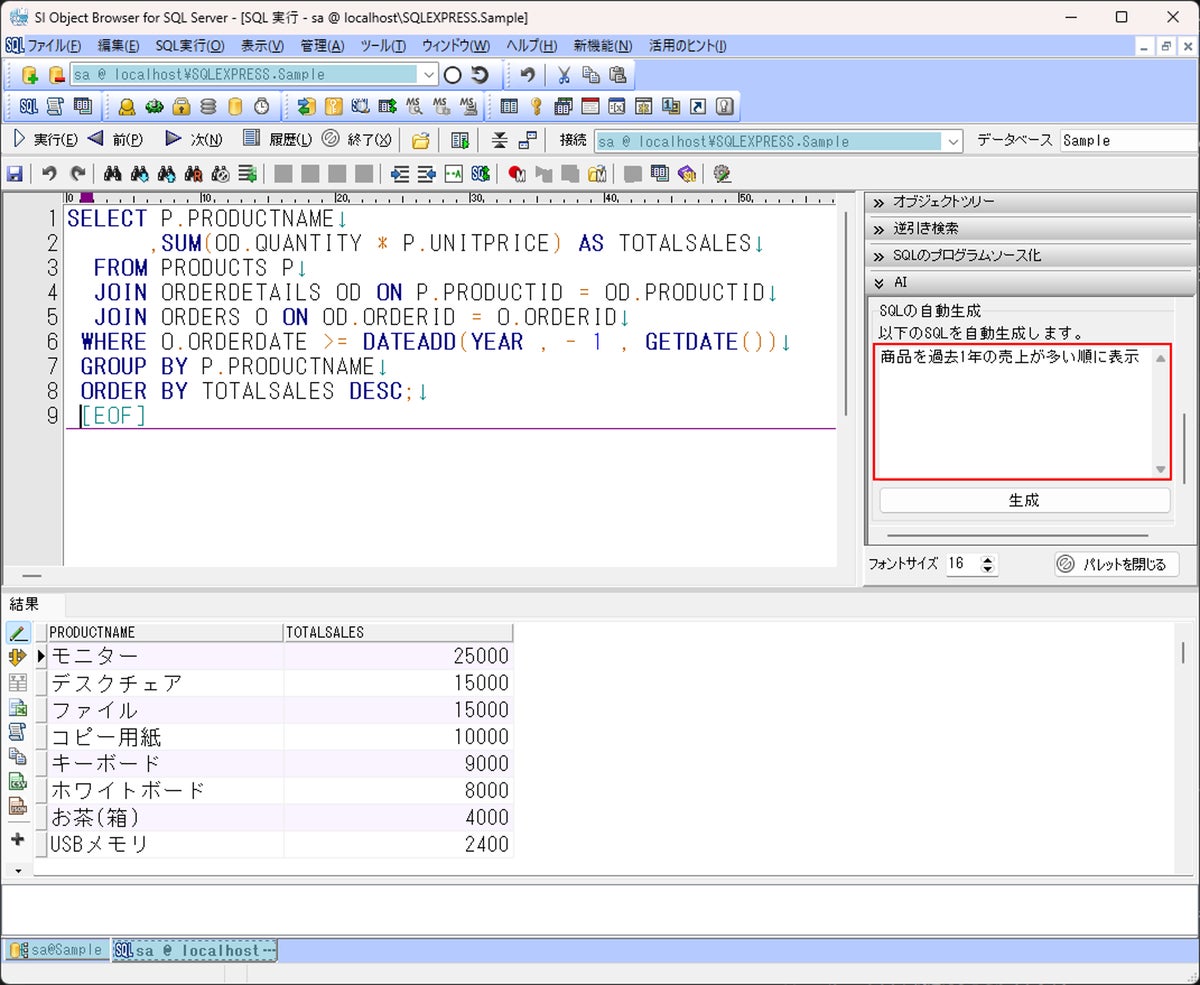 日本語のプロンプト(指示文)からSQLを生成する機能を追加しました。