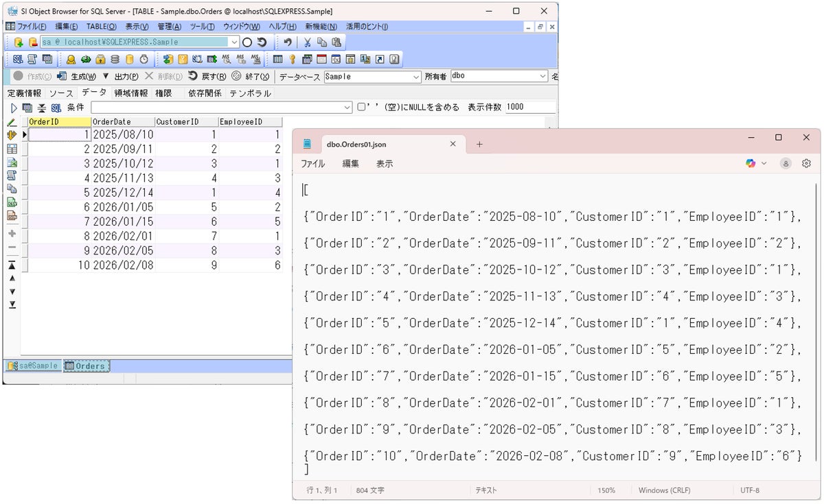 最新バージョンでは、生成AIを利用したSQLの自動生成や構文エラーチェック、SQL整形の機能を追加しました。生成AIを活用したこれらの機能は特許取得済です。(特許番号: 特許第7763432号)。また、JSONのデータ出力等の機能強化を行い、外部システムとの連携が可能となります。