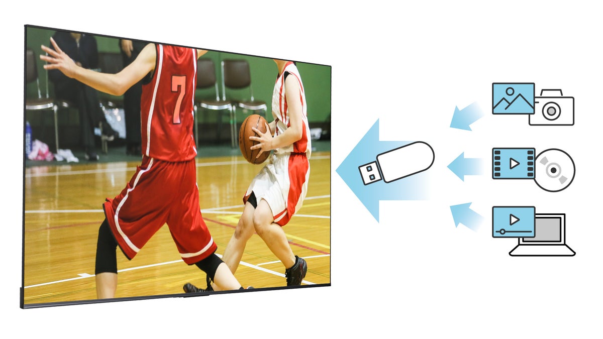 4K対応メディアプレーヤーを内蔵しており、USBメモリー経由で内蔵メモリーに保存した動画・画像・音声ファイルをスタンドアローンで再生できます。シャッフル、リピート再生など多彩な再生モードに加え、ON/OFFタイマーにも対応し、サイネージ運用をシンプルに実現いたします。