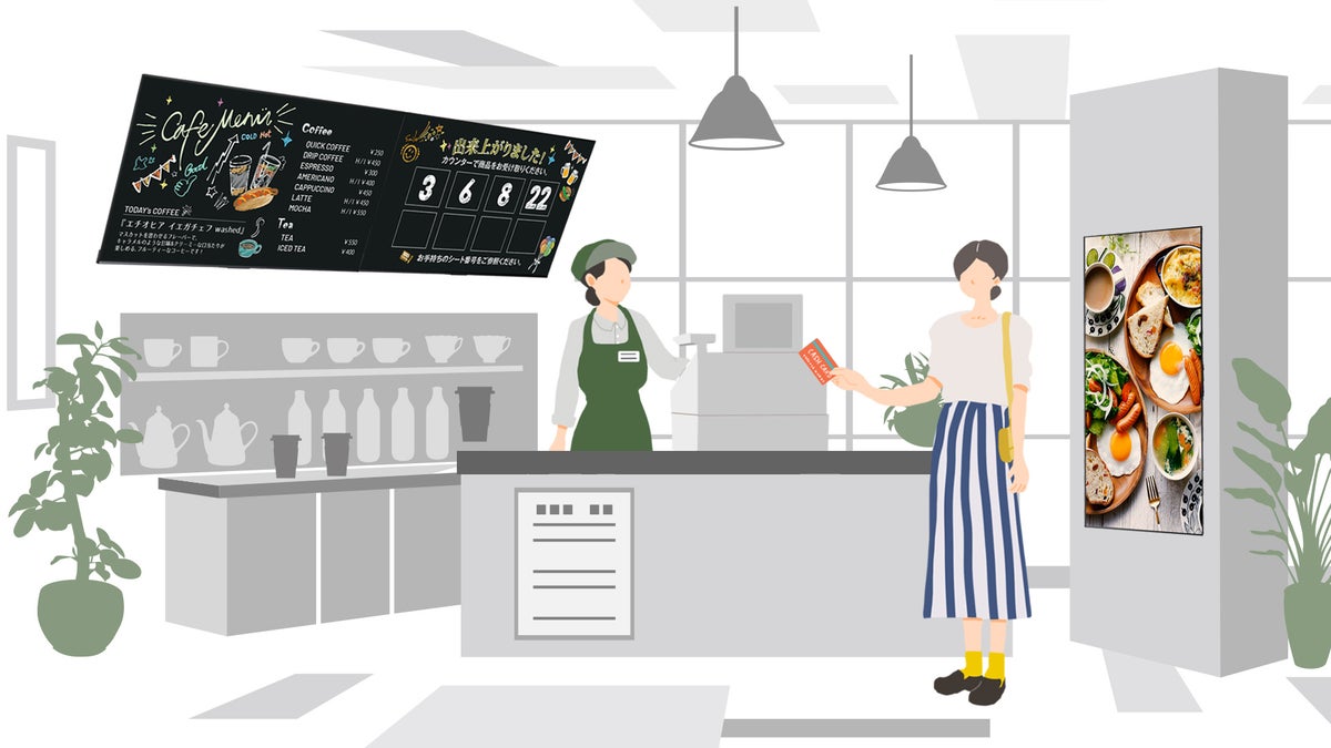 HTML5ブラウザを搭載しており、Web配信型のサイネージコンテンツを直接表示可能。ネットワークにつなぐだけで即運用でき、リアルタイムな更新が可能です。店舗・オフィス・学校など多様なシーンで柔軟な情報発信を実現いたします。