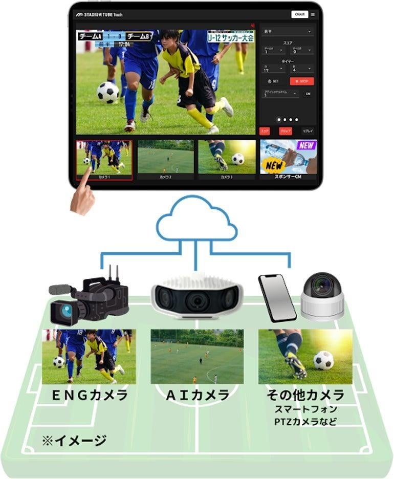 最新のスポーツAIカメラ「STADIUM TUBE S3」によるAI自動撮影・編集に加え、有人カメラによるズーム映像を組み合わせ、タブレット操作で直感的に切り替える次世代型ライブ配信を実施します。