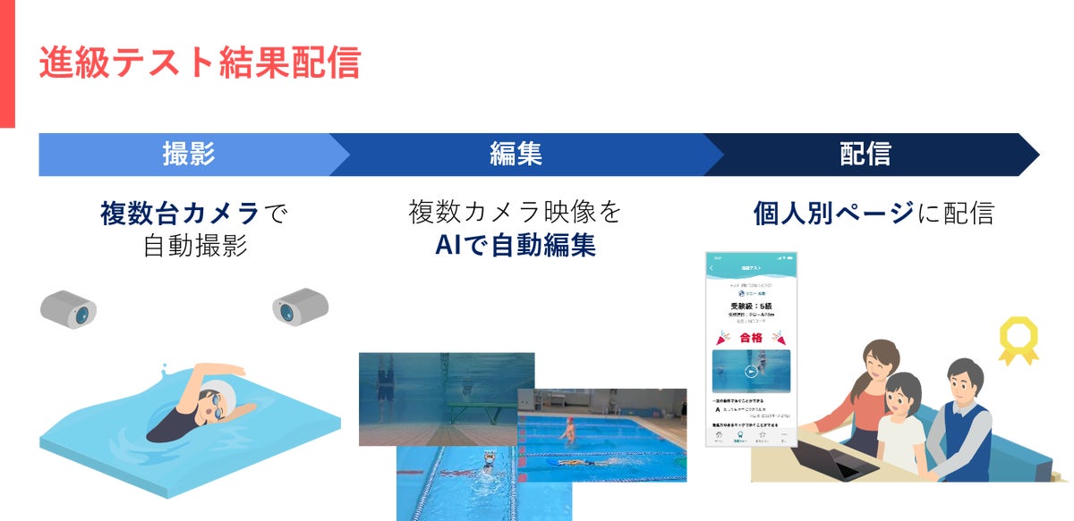 進級テストの結果や動画をご覧いただくことができ、ご家庭での会話にもつながります。撮影された動画をAIによる最新技術で自動編集。周囲には見えにくくなる加工が入りプライバシーにも配慮しております。