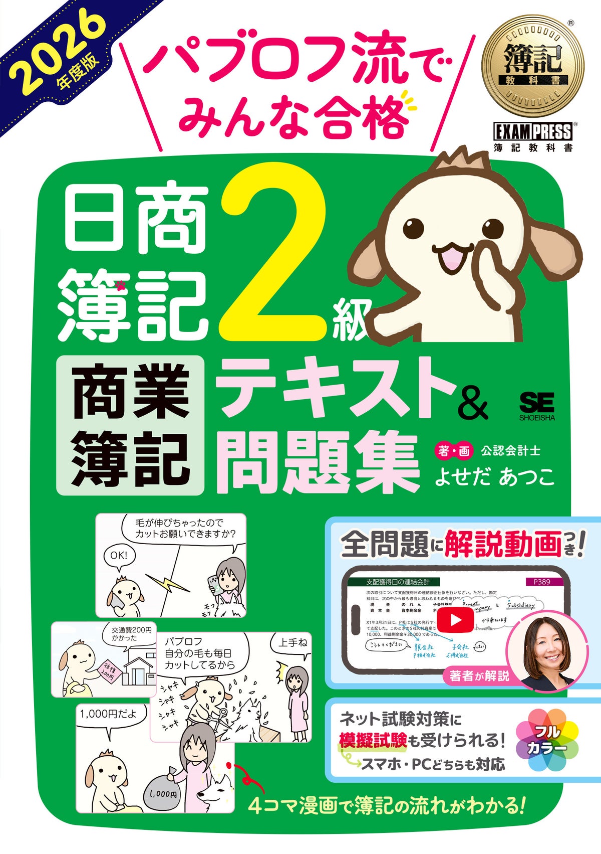 オールカラーと4コマ漫画で、ゼロから理解できる日商2級商業簿記・入門書です。すべての練習問題にスマホ視聴もできる「解説動画」つき。