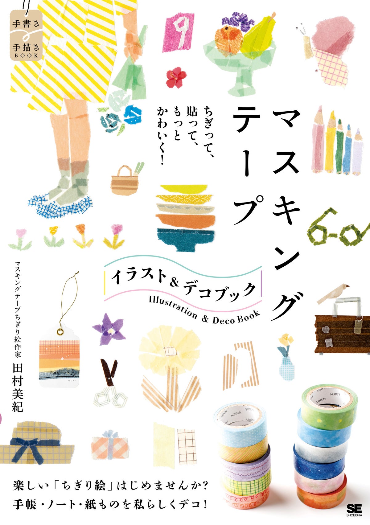 絵心不要で手軽にかわいく描ける!マスキングテープちぎり絵作家・田村美紀さんによるかわいいイラスト&デコ練習帳です。