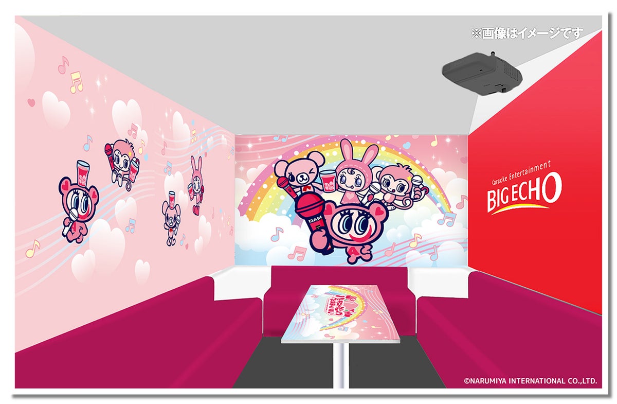 ビッグエコー渋谷センター街本店となんばアムザ店にコラボルームを設置するほか、仙台青葉通り店、名駅4丁目店および西鉄天神駅前店を加えた全5店舗ではオリジナルシールがもらえるコラボドリンクを販売します。