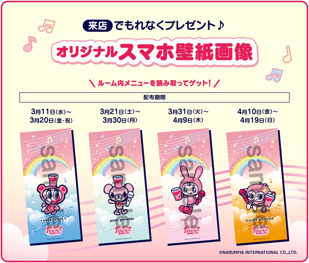 株式会社第一興商(以下、当社)は、株式会社ナルミヤ・インターナショナル(本社:東京都港区、代表取締役社長執行役員:國京 紘宇/以下、ナルミヤ)のジュニアブランドのオリジナルキャラクター、「ナルミヤキャラクターズ」とのコラボ企画「ハーモニーピンクフェスティバル」を2026年3月11日より開催します。