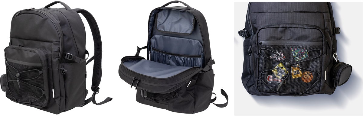 ユニセックスで選びやすい、使い勝手の良い30Lリュックサック。カジュアルなデザインで通学から普段使いまで対応します。アレンジ自在なメッシュ+コード仕様のフロントポケットを備えた、大容量・多ポケットモデル。
