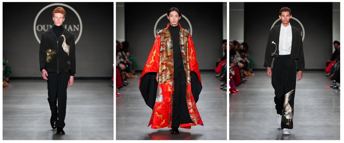 日本からは、自身の精神的体験と再利用素材を用いた独自の表現で注目を集めるブランド「Marika Suzuki」、および、社会問題と向き合う強いメッセージ性と日本の職人技術を融合させた作品を発表する現代アーティスト「Ao Miyasaka」、さらに、日本の歴史的価値ある着物地を現代のシルエットへ再構築し、”記憶を着る”というコンセプトで国際展開を進めるブランド「OUNCHAN(おうんちゃん)」が参加。唯一無二のコレクションを披露しました。