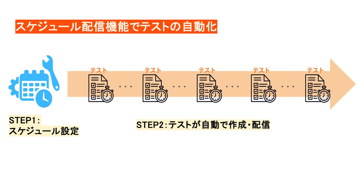 スケジュール配信を活用すれば、この毎回のテスト作成すら学期に1度の設定に集約できるため、テスト運用にかかる負担はさらに軽減されます。先生が繰り返しの作業に費やしていた時間を、生徒一人ひとりと向き合う時間へ。