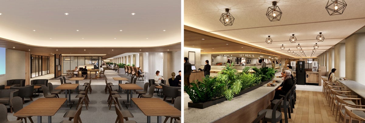 ラウンジイメージ(左)とテナント専用食堂イメージ(右)