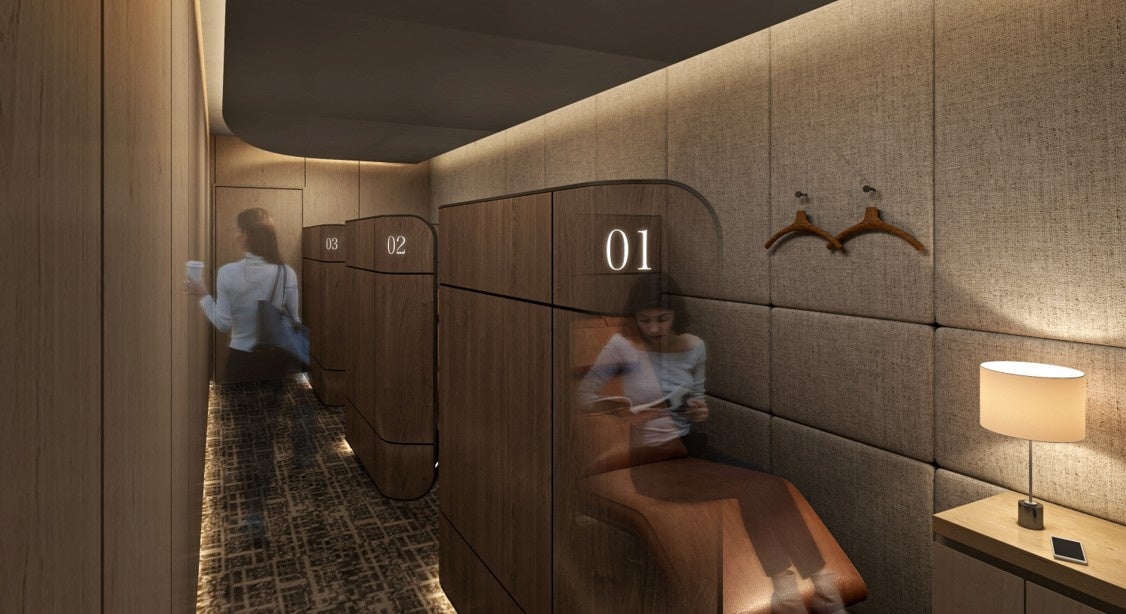 ⇒仮眠室やソロワークブース・Web会議用の個室等、オフィスワーカーのための新機能を搭載