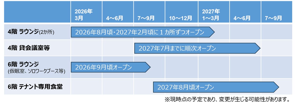 本計画は、サンシャインシティで働くオフィスワーカー約12,000人の働きやすさと施設満足度の向上を図るものであり、その第一弾として、4・6階のワーカーサポート施設等、計約800坪のリノベーション工事に2026年3月より着工し、テナント専用食堂・大規模ラウンジを含む“池袋エリア最大(当社調べ)のワーカーサポートエリア”として、2026年夏以降、順次オープンを予定しています。