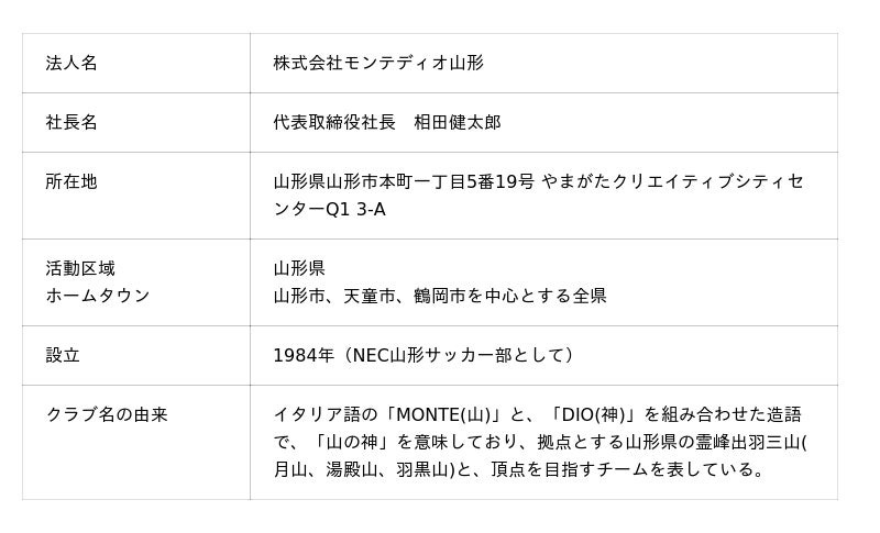 モンテディオ山形クラブ概要
