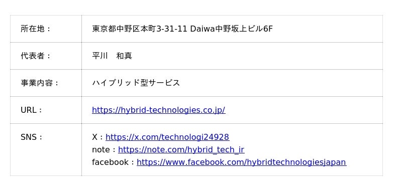 【株式会社ハイブリッドテクノロジーズ 概要】