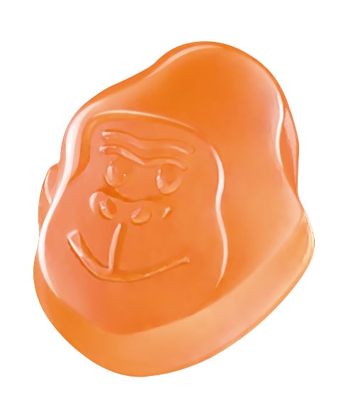 ゴリラ級のハード食感に仕上げた、ゴリラの顔型のグミです。健康家電である「ゴリラのひとつかみ」とのコラボということで、立ち仕事の後や疲れをリフレッシュできるようにクエン酸カリウムを配合しています。