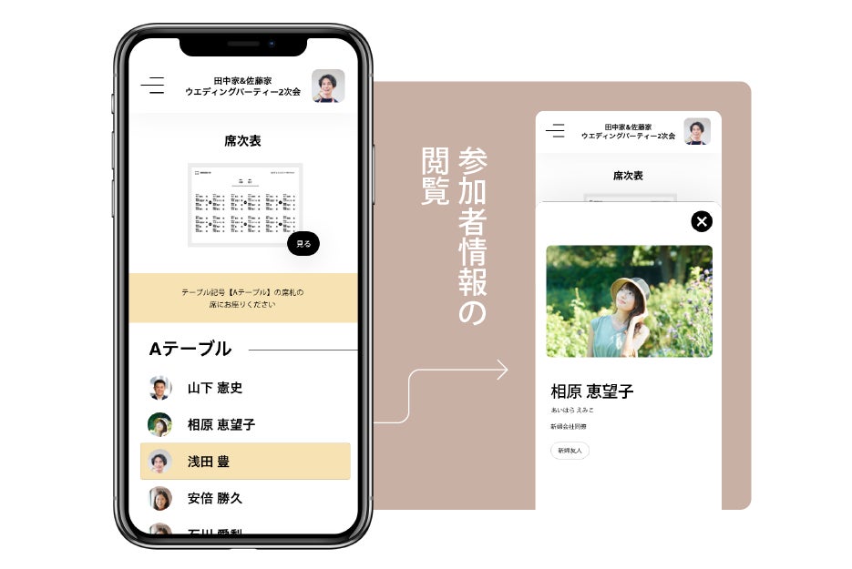 結婚式二次会・同窓会・ビジネスイベントをスマホ一括管理。アナログな受付・進行をデジタル化し、不慣れな幹事でも「ゲストと共に楽しめる」新しいイベント体験を提供。