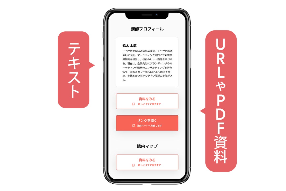 受付後にイベント案内ページを自動配信し、スケジュールや席情報をスマートフォンで確認可能。参加者が次の行動に迷わず動ける、スムーズなイベント体験を実現します。