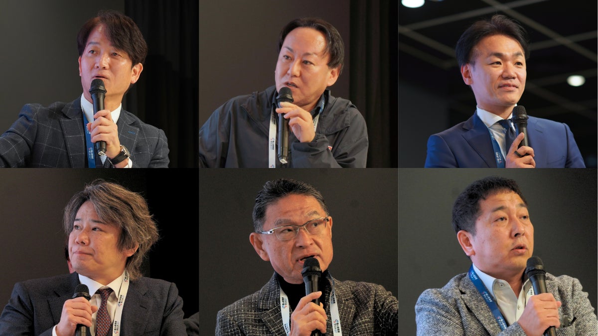 上段左からからLIFULL / ビジュアル・プロセッシング・ジャパン / ハンワホームズ下段左からNE / セレンディップ・ホールディングス / ツナググループ・ホールディングス(登壇順)