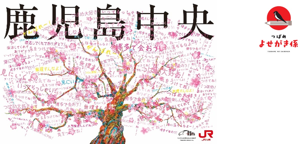 明日、2月27日(金)以降、九州新幹線の各駅(博多~鹿児島中央 全12駅)に、皆様から「つばめ」へのメッセージを記入いただける応援旗を設置いたします。記載いただいた応援旗は、3月29日(日)に熊本港から「つばめ」とともに出発し、各地を回り博多駅前に展示いたします。どなたでも、メッセージをお書きいただけますので、ぜひ、みなさまのメッセージで桜の木を満開にしてください!