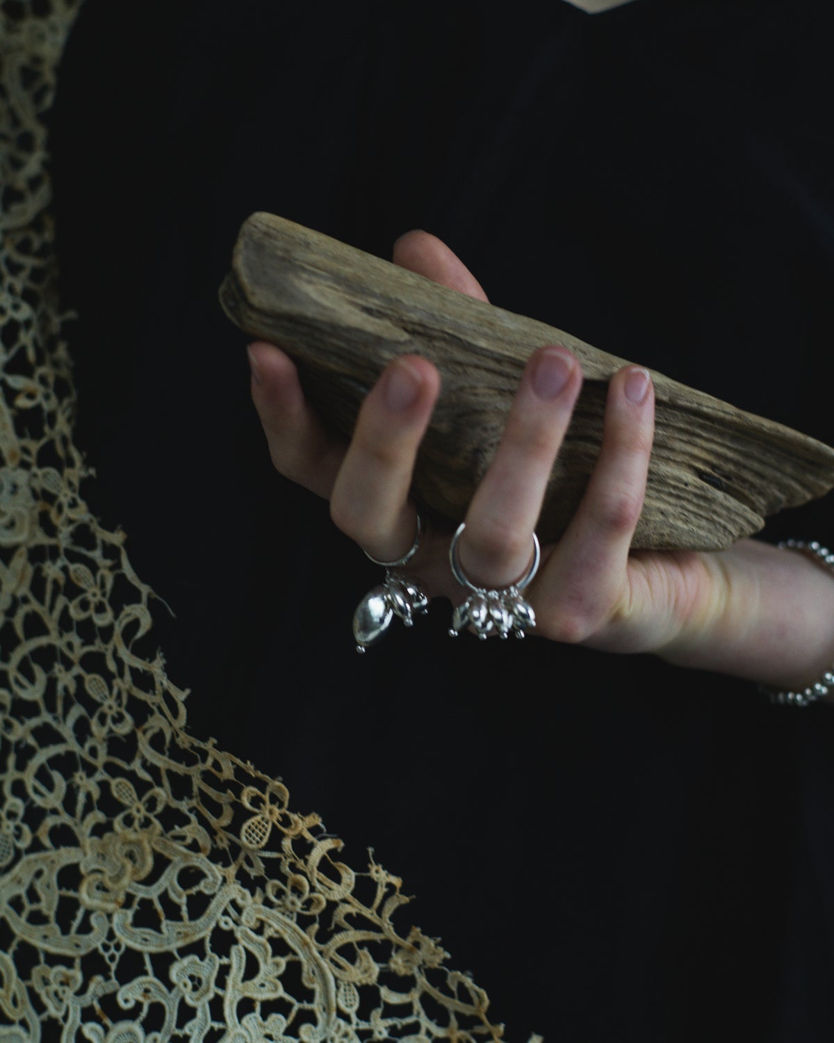 シルバー925の艶やかな光沢を持つ、丸みを帯びた有機的なフォルム。光を受けて表情を変え、控えめながらも指先に静かな強さと奥行きを添えます。