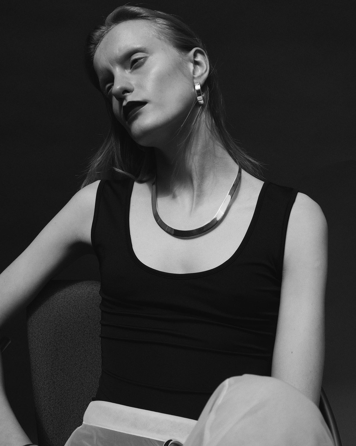 しなやかに続くカーヴィーなシルエットが素肌に沿い、首元にやわらかな陰影を生み出します。