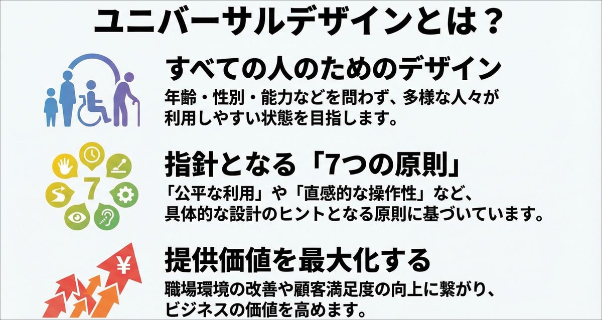 - ユニバーサルデザインの定義と重要性を正しく理解する