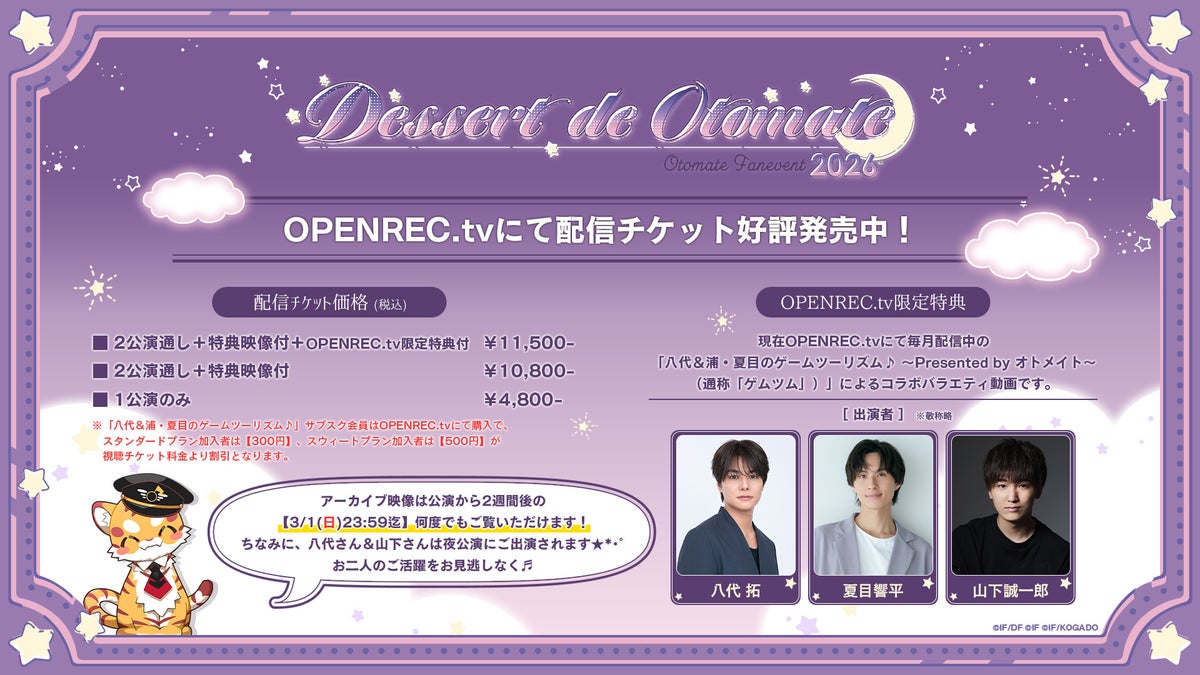 ※OPENREC.tvにて毎月配信中の「八代&浦・夏目のゲームツーリズム♪ ~Presented by オトメイト~」のサブスク会員の方はOPENREC.tvでご購入いただきますと割引の対象となります。スタンダードプランは【300円】スウィートプランは【500円】の割引となります。