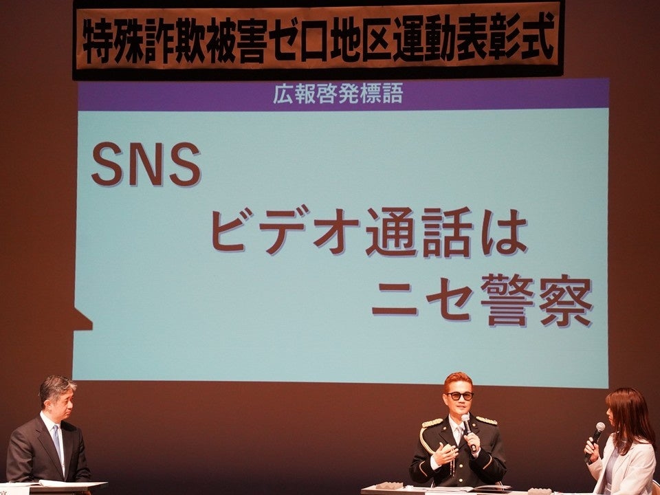 トークセッションでは、最新の「ニセ警察詐欺」についてクイズ形式で解説。「本物の警察官はSNSで連絡したり、ビデオ通話で逮捕状を見せたりすることはありません」と断言しました。