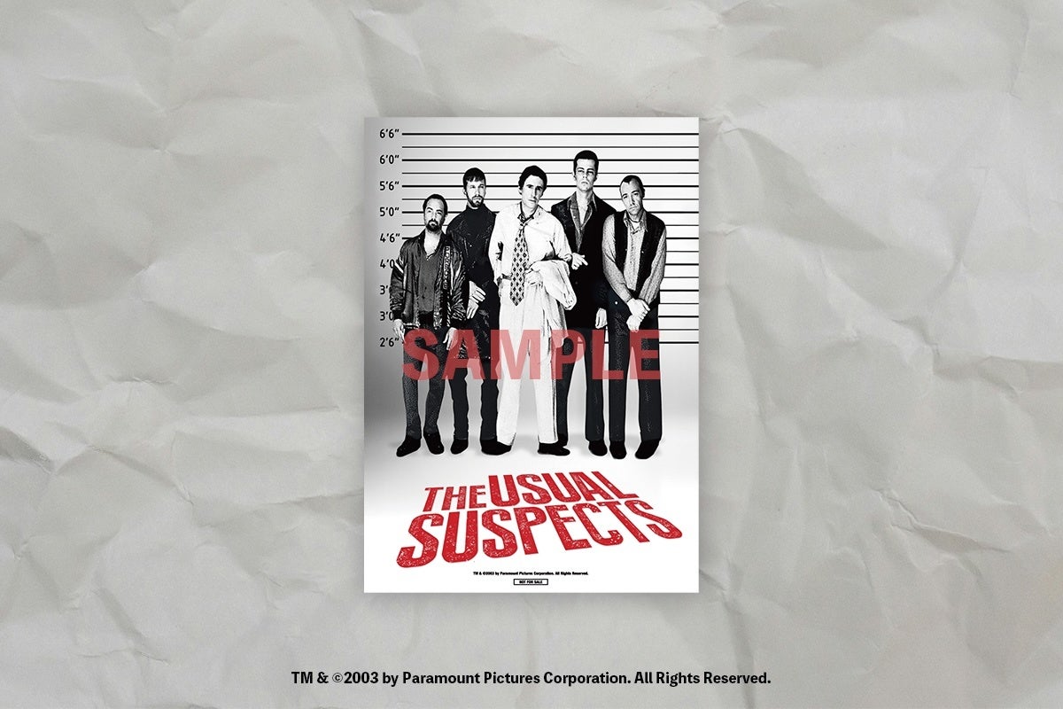 このたび、入場者プレゼントが決定しました!『ユージュアル・サスペクツ』の入場者に先着・限定数でプレゼントされるのは「海外版ポスタービジュアル A5サイズミニポスター」。海外版ならではのクールでエッジの効いたビジュアルはインテリアにも。詳細は「入場者プレゼント情報」をご覧ください!