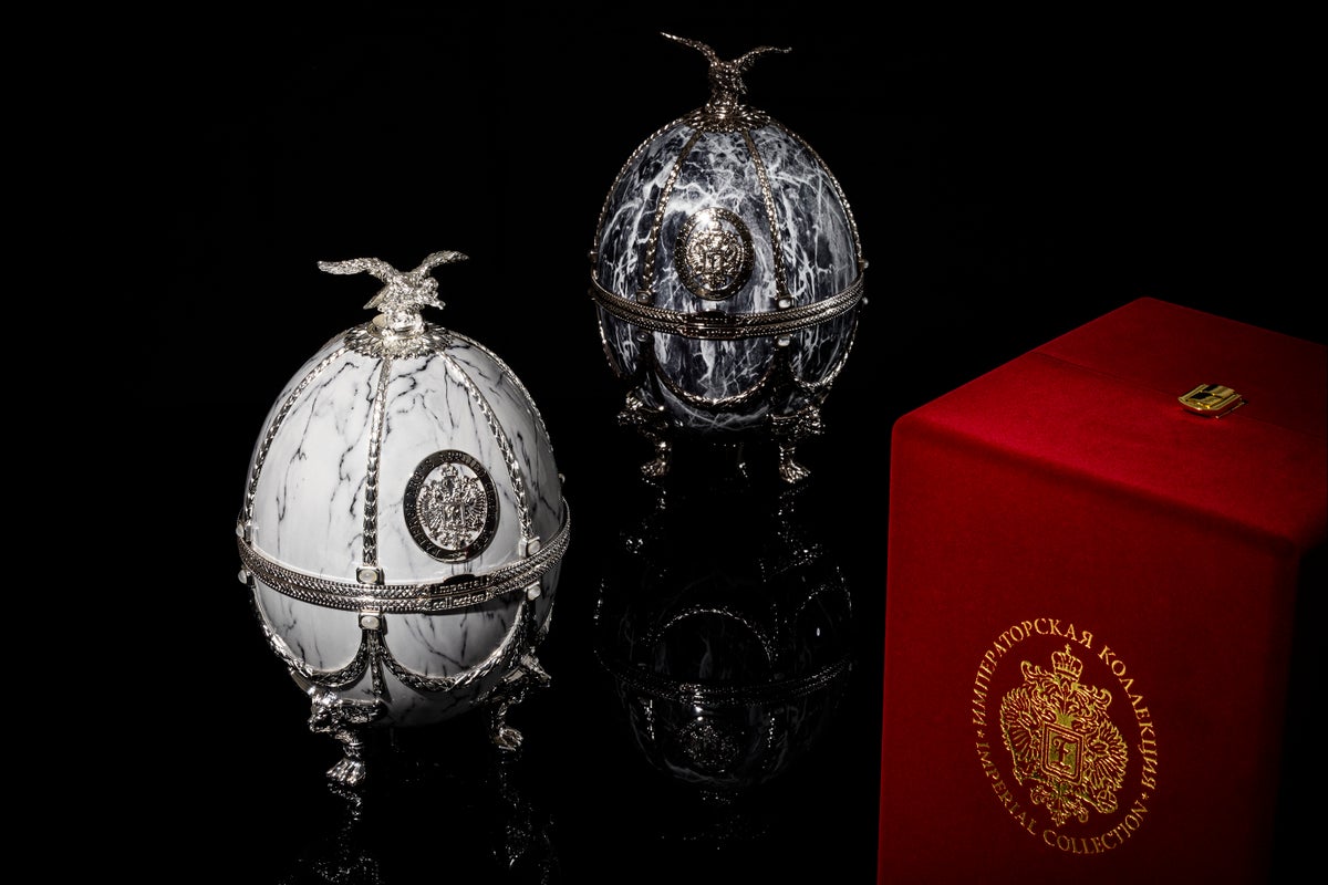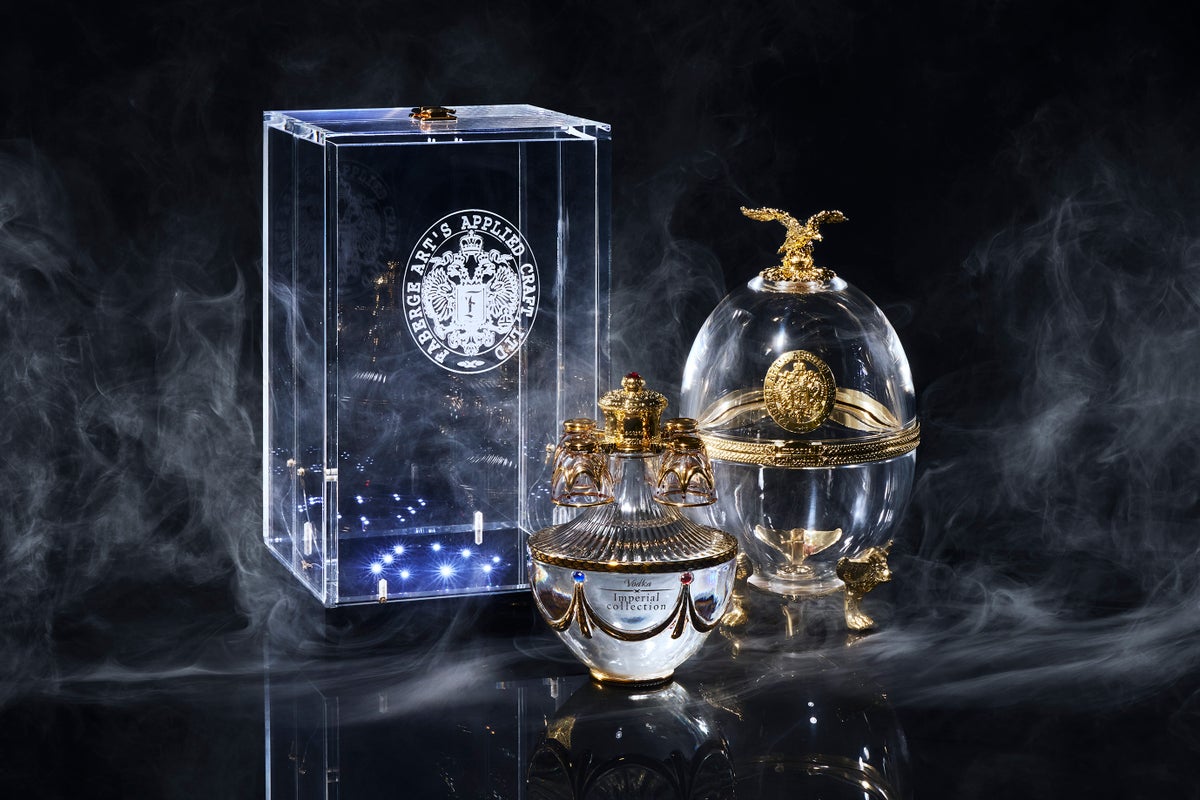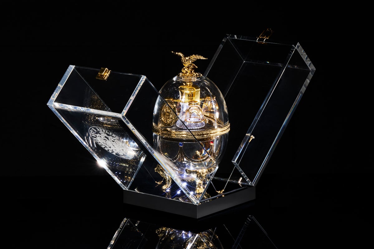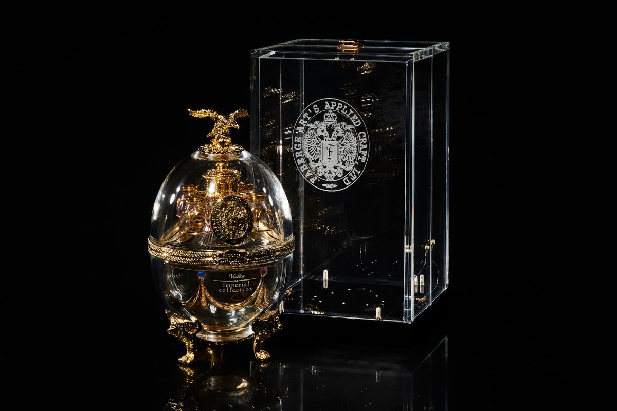 「Imperial Collection Vodka」は、絢爛豪華な装飾を纏ったエッグの中に優美なヴェネツィアングラスに装飾を施したデキャンタと4つのショットグラスが収められています。そのデキャンタに詰められているのは、伝統的製法で精緻に造られたスーパープレミアムウォッカ。クラフトマンシップのすべてを結集させたハンドメイドコレクションです。