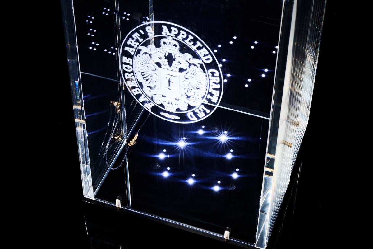 今回発売となる商品は、インペリアルコレクション初、透明の新作。透き通ったエッグは澄んだ輝きを放ち、宝石を思わせる仕上がりとなっています。エッグ本体には宇宙航空開発事業が使用しているプレキシガラスを使用。軽くて割れにくく、ガラスを上回る透明性と光沢を持ち合わせており、クリアな存在感を際立たせています。
