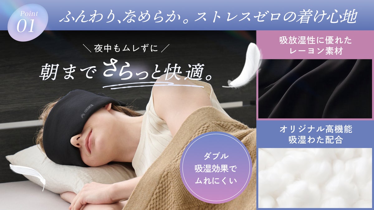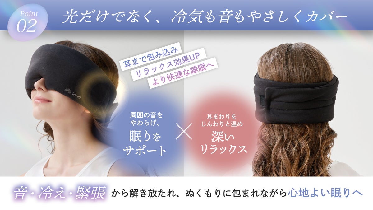 株式会社KURUKURU(本社:東京都中央区、代表取締役:関沢 康寛)は、同社が展開する総合寝具ブランド「GOKUMIN」より、睡眠の質向上を目的とした“眠活”への関心の高まりを背景に、入眠環境を整える「CICAアイマスク-ふんわりカバー-」、「CICAアイマスク-ナイトロック-」を2026年2月26日より発売しました。近年、“眠活”は単なるトレンドではなく、生活の質やパフォーマンス向上を意識した行動として定着しつつあります。一方で、実際の就寝環境にはスマートフォンの光、生活音、空調による冷えや乾燥など、無意識のうちに入眠を妨げる要因が多く存在しています。本製品は、そうした現代特有の入眠環境ストレスをやさしく軽減し、“眠活”を日常の中で無理なく実践できるアイテムとして開発されました。