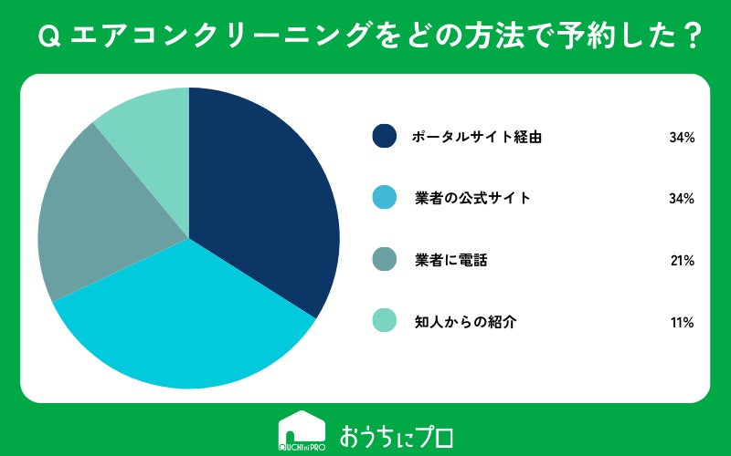 - エアコンクリーニングの予約には、ポータルサイトを経由する人と業者の公式サイトから予約する人が同じくらい存在する。