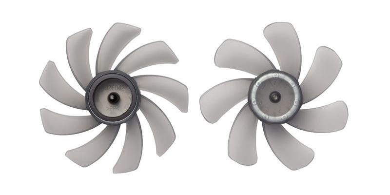後方の羽根を従来の5枚から7枚へ、前方の羽根を7枚から9枚に増やすとともに、羽根の角度を見直しサイズを最適化することで、静音性は保ちながらも風量を従来比108%に向上させました。