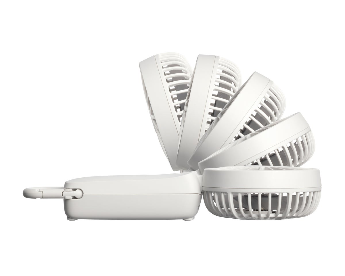 本体を置きファン部を立てる事でデスクファンとして、付属のネックストラップを使用してハンズフリーでもご使用いただけます。